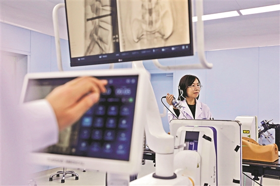 近年来,基于数据算法、人工智能、精密智控等前沿核心科技,该公司精研手术机器人核心技术平台,目前产品管线已覆盖骨科、普外科、妇科、泌尿科、呼吸科、影像科等科室。本报记者 刘金梦 摄