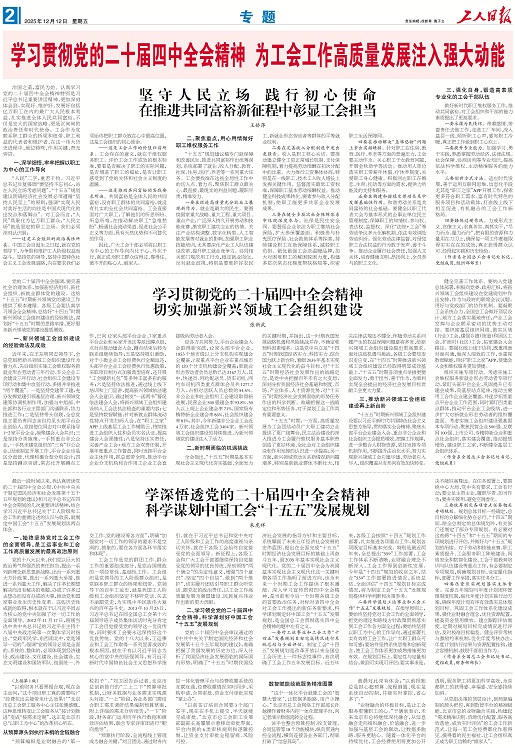 学深悟透党的二十届四中全会精神 科学谋划中国工会“十五五”发展规划