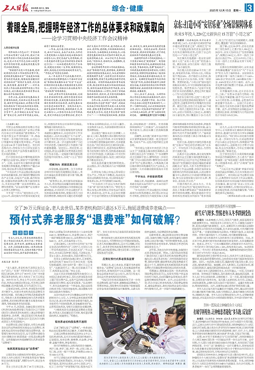 北京大学法学院教授薛军在接受《工人日报》记者采访时表示,预付式养老服务本质上属于预付费产品,这类产品的特点是消费者提前预付费用、延后享受服务。“在此情形下,卖方会迅速形成一个资金池,因此也容易出现卖方收了钱却另做他用,或设置极为苛刻的退款条件等情况。”