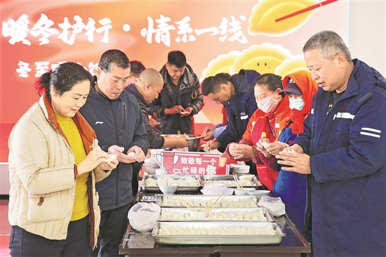 活动现场,医务人员为一线劳动者进行健康体检,并一起动手包饺子,让货车司机和环卫工人吃上暖心暖胃的传统美食,驱散冬日寒意,感受暖心关怀。