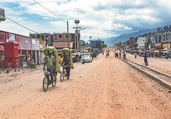 刚果(金)东部城市乌维拉毗邻布隆迪,是地区重要商贸枢纽。刚果(金)反政府武装“M23运动”日前宣称,将单方面从乌维拉撤出部队。“M23运动”还称将继续支持现有和平进程。图为近日,在刚果(金)东部城市乌维拉,当地居民用自行车搬运物资。 新华社发 (扎内姆·内蒂·扎伊迪 摄)