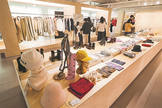 12月18日,在浙江嘉兴电子商务产业园南湖园区内,顾客在一家电商公司的体验店选购服饰。