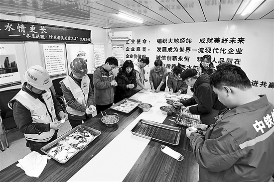 在冬至即将来临之际,中铁城建三公司西安项目部12月17日组织开展“情暖冬至送饺子”慰问活动。活动现场,一线建设者和项目职工一起包饺子、做游戏,共享“热气腾腾”的工地暖心服务。本报通讯员 陈李伟 王帅 摄