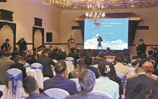 尼泊尔-中国投资研讨会近日在尼首都加德满都举行,与会者就深化两国投资合作等话题展开交流探讨。尼泊尔财政部长拉梅绍雷·普拉萨德·卡纳尔致辞表示,尼泊尔愿与中国一道,在互信互利的基础上不断深化投资合作,共同推动两国经济高质量发展。这是近日在尼泊尔加德满都拍摄的尼泊尔-中国投资研讨会现场。新华社记者 张平 摄