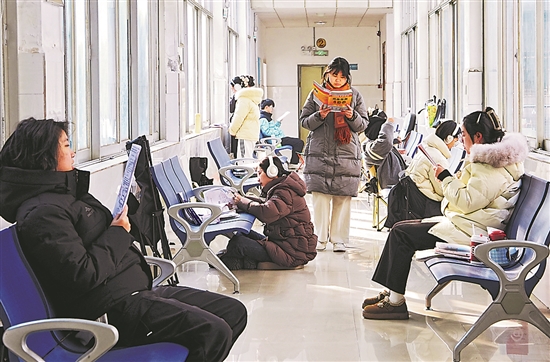 12月18日,湖南省衡阳市南华大学2026年度考研的同学们在学校图书馆内看书复习。2026年全国硕士研究生招生考试12月20日至21日举行,考研学子们加紧复习,积极备考。新华社发(曹正平 摄)