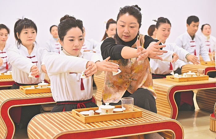 12月24日,在四川省眉山市仁寿县向日葵职业培训学校,学员正在接受茶艺技能培训。