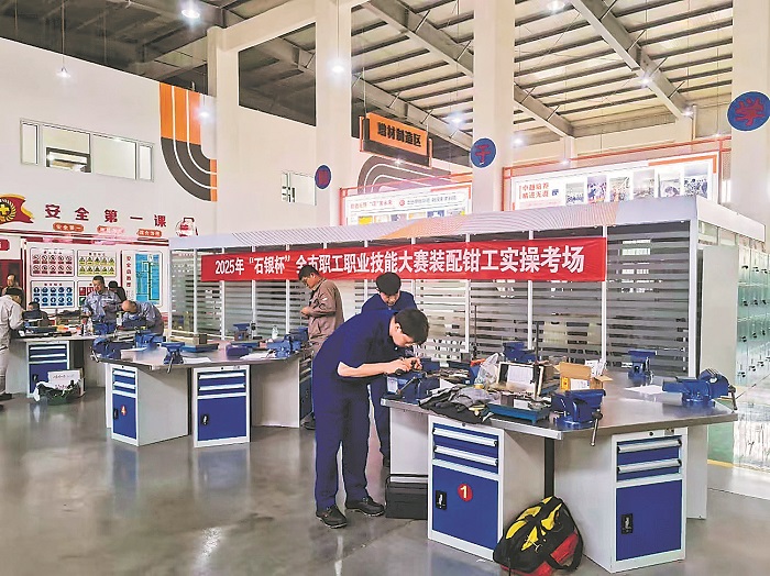 全区职工职业技能大赛装配钳工项目竞赛现场。