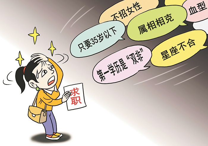 今年的政府工作报告提出,促进充分就业、提高就业质量,坚决纠正各类就业歧视。当前,我国在促进就业公平方面取得了重要成绩,但就业歧视现象依然存在。除了“只限35岁以下”,“不招已婚未育女性”“拒绝录用乙肝病毒携带者”等“拦路虎”困扰着求职者。