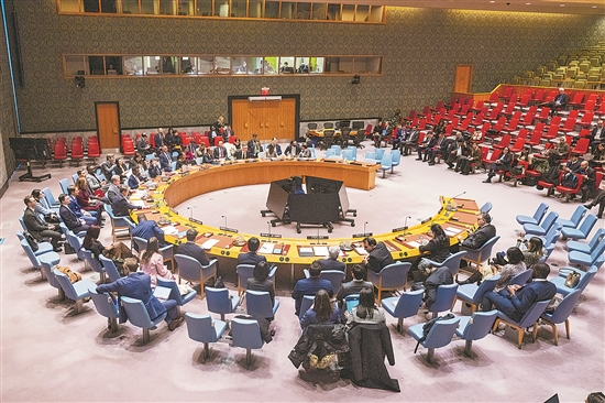 这是12月23日在位于纽约的联合国总部拍摄的联合国安理会就委内瑞拉局势举行的紧急会议现场。