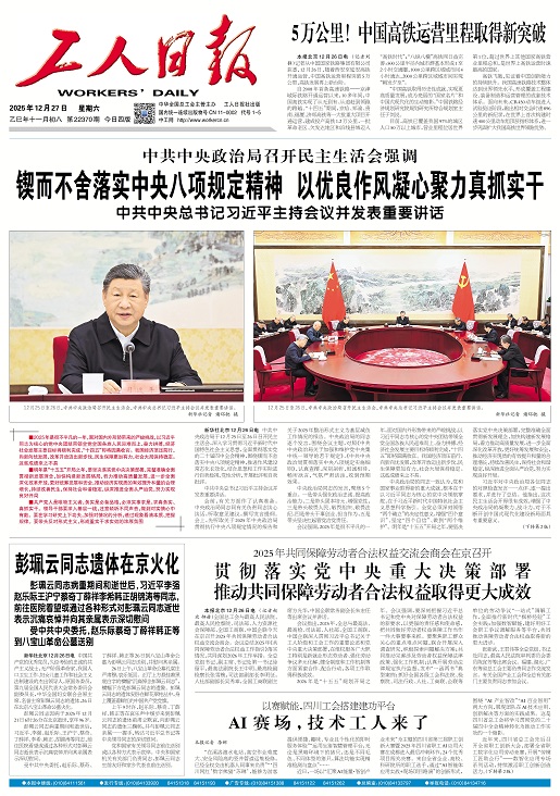 新华社北京12月26日电 中共中央政治局于12月25日至26日召开民主生活会,深入学习贯彻习近平新时代中国特色社会主义思想,全面贯彻落实党的二十届四中全会精神,围绕锲而不舍落实中央八项规定精神,推进作风建设常态化长效化,结合思想和工作实际进行自我检视、党性分析,开展批评和自我批评。