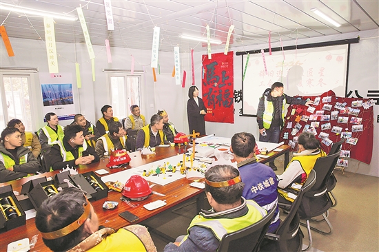 近日,陕西西安碑林区张家村街道总工会、白庙社区工会、中铁城建三公司西安项目部联合开展“辞旧迎新敬匠星,工会温情暖寒冬”元旦关爱活动,为建筑工人送上慰问物资与节日祝福,并通过集体生日、故事分享等营造尊重劳动、关爱工友的氛围。本报通讯员 陈李伟 王帅 摄