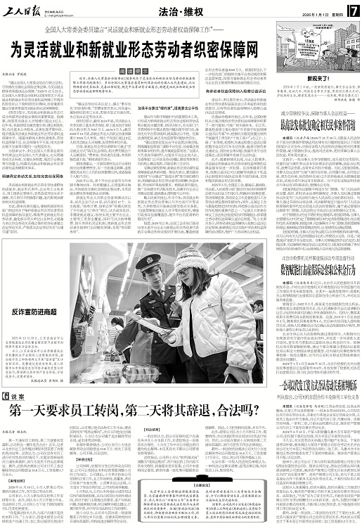 全国人大常委会委员建言“灵活就业和新就业形态劳动者权益保障工作”——