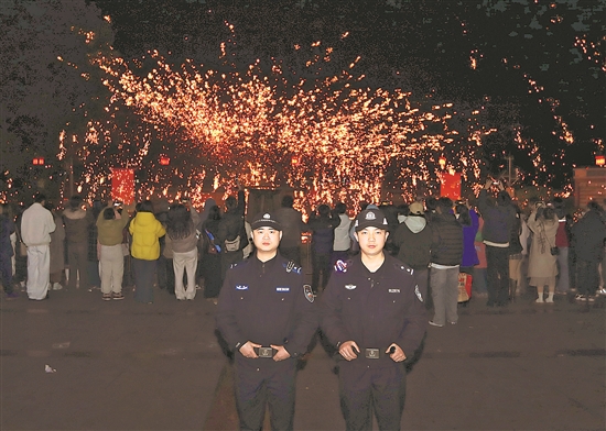 1月1日凌晨,在贵州省赤水市河滨小广场跨年夜活动现场,公安民警在执勤。本报通讯员 王长育 摄