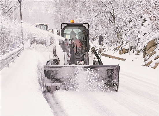 1月1日,在241国道湖北襄阳保康后坪镇红岩寺路段,工作人员在进行除雪作业。本报通讯员 陈泉霖 摄