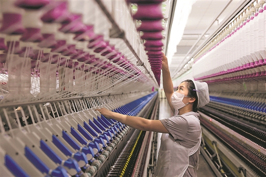 1月1日,在山东枣庄经济开发区一家企业,工人在加工高端纱线。本报通讯员 孙中喆 摄