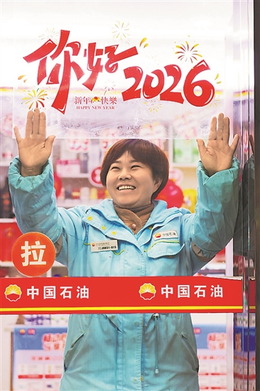 1月1日凌晨,中国石油四川遂宁销售分公司加油站员工提前装扮店铺,为前来加油的顾客朋友们送上温暖的祝福。本报通讯员 杨懿 摄
