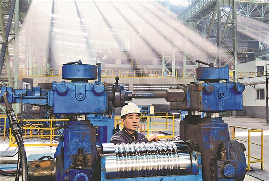 1月1日,内蒙古自治区兴安盟敬业集团乌兰浩特钢铁有限责任公司工人正对设备进行维护,确保节日期间生产稳定运行。 本报通讯员 郑志宏 摄