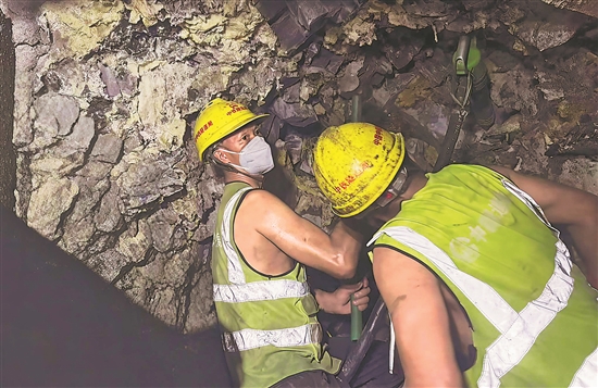 1月1日,云南大瑞铁路高黎贡山隧道建设者在掌子面施工。本报通讯员 段义康 摄