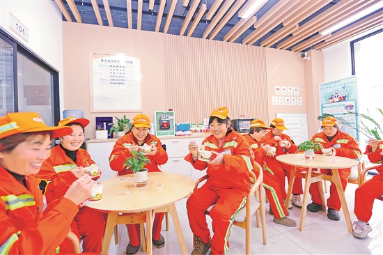 1月1日,重庆市万盛经开区万盛街道北一社区工会驿站,志愿者为环卫工人们端上热气腾腾的饺子,让在寒冬里依旧坚守岗位的户外劳动者在新年里收获暖暖情意。本报通讯员 王泸州 摄