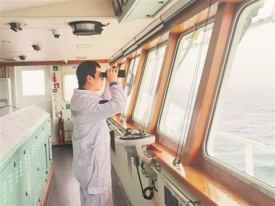 1月1日,中远海运“华盛海轮”正航行在波涛汹涌的白令海上,船长孙小波坚守驾驶台20多个小时,领航船舶战风斗浪,全力保障国家大宗商品运输任务。本报通讯员 解龙龙 摄