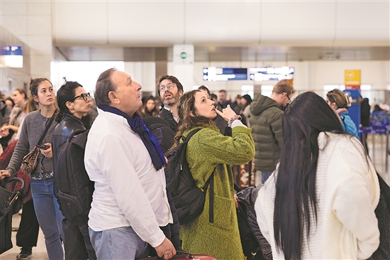 据希腊国家广播电视公司报道,由于无线电通信故障,当地时间1月4日9时35分(北京时间15时35分)起,希腊境内所有机场均暂停航班起降。图为当日人们在希腊雅典的机场内查看航班信息。新华社/美联