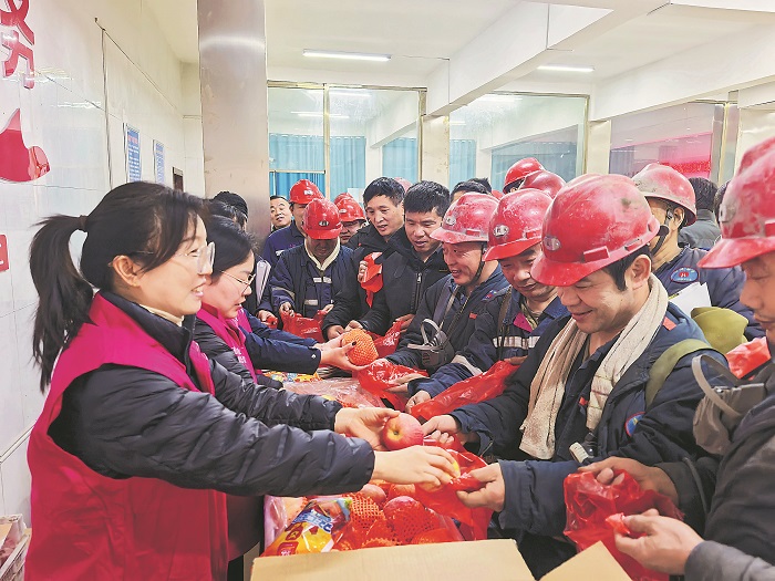 2025年12月31日,安徽淮北矿业集团朱仙庄矿组织协安员来到井口开展“迎新年送平安”活动。协安员一边将慰问品送到职工手中,一边叮嘱职工节日期间注意安全。王道玉 摄