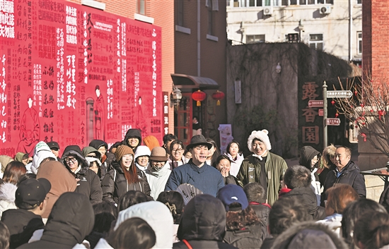 1月10日,观众在天津张园观看《津门往事》沉浸式演出。