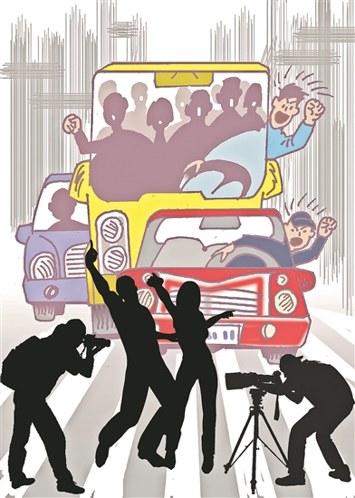 斑马线上拍摄跳舞、隧道里架起直播灯、躺在网红公路中间拍照……一段时间以来,一些人无视交通秩序,动辄拿生命“凹造型”,这不仅是对自己的不负责,更是对其他交通参与者生命安全的漠视。类似的乱象不止发生在交通领域,在“人人都有摄像头”的当下,一些博主把公共空间当成了私人秀场:从餐厅、景区到公园、商场,“长枪短炮”无处不在,不知情的路人沦为“背景板”,甚至在直播间被评头论足——类似拍摄行为扰乱了公共秩序,同时涉嫌侵犯他人隐私。公共空间是城市文明的一面镜子,网红经济越是红火,越要划出边界和底线。有关方面应及时规制不当拍摄行为,网络平台也要通过优化算法引导内容生产方向。对于自媒体博主来说,想要红得更长久,先要懂得敬畏与克制。