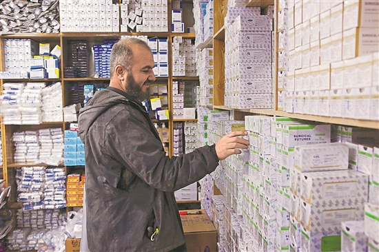 从针剂、片剂、口服液到手术用器材,在阿富汗首都喀布尔的药店里,药品包装盒上“中国制造”的英文标识引人注目。来自中国的药品正走进阿富汗民众生活,成为阿医疗卫生领域的重要保障。图为近日,一名工作人员在阿富汗首都喀布尔的药店里准备药品。 新华社发 (塞夫拉赫曼·萨菲 摄)