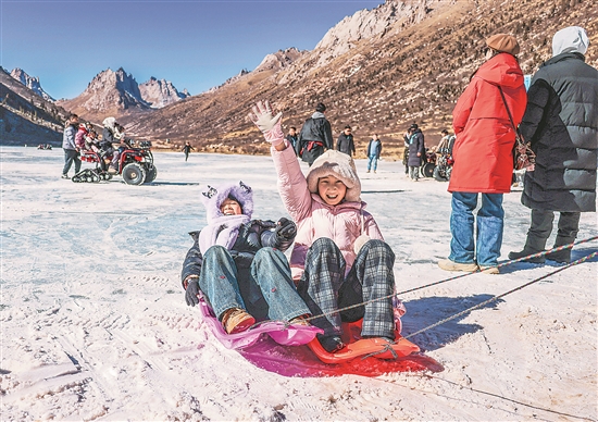 寒冬时节,各地掀起冰雪运动热潮。人们滑雪、溜冰、玩滑冰车,乐享冰雪运动的趣味。新华社发(米林 摄)