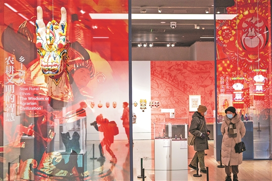 1月14日,观众在位于北京的中国美术馆观看“新民艺、新风尚、新生活——文艺赋美乡村与当代民间手工艺”展览。