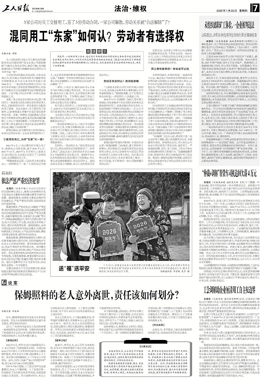 新规对案件审理有何影响?孙承松告诉记者:“根据《解释二》的规定,基于混同用工的事实,劳动者既可以依据书面劳动合同选择用人单位,也可以选择将未与其签订劳动合同的用工主体作为用人单位。杭州某公司和北京某公司对小吴存在混同用工事实,一家公司注销,并不影响另一家公司继续履行劳动合同。”