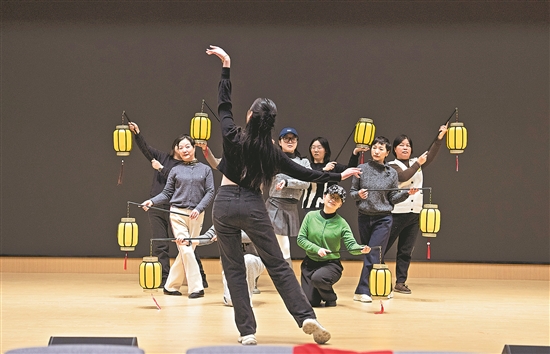 近日,在江苏省苏州市工人文化宫的多功能厅,企业职工在舞蹈老师带领下排练年会舞蹈。