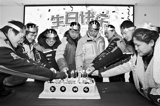 1月20日,江苏省连云港市连云区总工会携手连云区市场监督局和南巷社区工会联合会,开展“苏工暖‘新’、市监爱‘新’”集体生日暨迎“腊八节”活动,邀请1月过生日的外卖骑手、快递员等新就业形态劳动者欢聚一堂,同唱生日歌、分享蛋糕、喝腊八粥、参加趣味游戏等,为他们送上节日问候与生日祝福。本报通讯员 朱华南 侍晓婷 摄