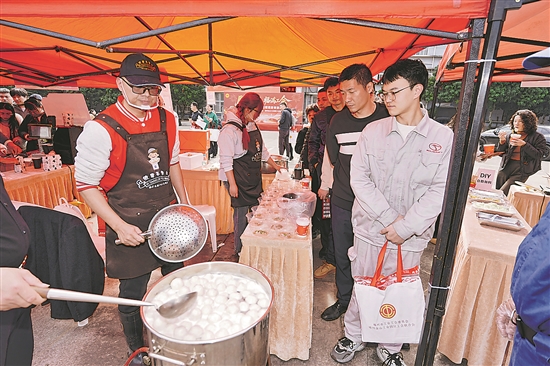⑩福州金山工业园区内,职工品尝非遗名小吃鱼丸。记者 李润钊 通讯员 卢弘毅 摄