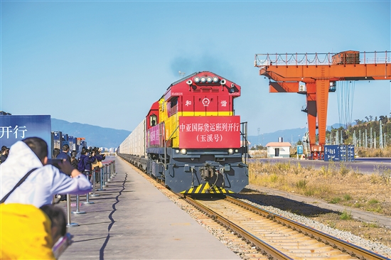 1月26日,中老铁路中亚国际货运班列在云南玉溪研和站发车。