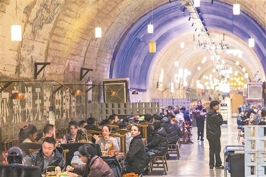 在重庆市两江新区,外籍人员在防空洞内品尝重庆火锅(1月24日摄)。