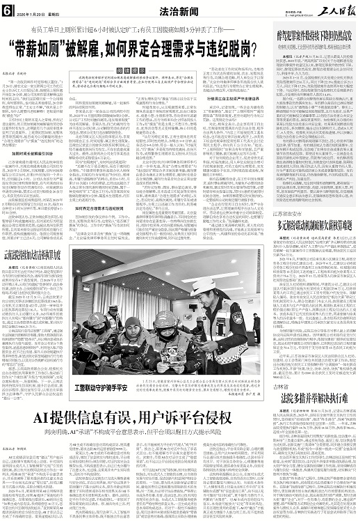 近期有法院审理并宣判因如厕离岗被解雇的劳动争议案件。律师表示,界定“合理生理需求”与“违纪脱岗”需综合多方面因素考量,企业行使用工自主权须严守合理合法边界,劳动者也应履行勤勉工作的义务。