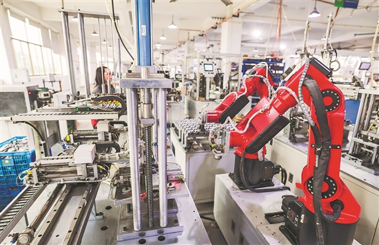 近年来,浙江省金华市金东区以高能级平台建设为支撑,积极推动科技创新与产业创新深度融合,深化“3+3”主导产业培育、优质人才培育,为企业创新发展提供全方位支持,助力新质生产力发展。截至目前,金华市金东区已培育国家高新技术企业280家。新华社记者 徐昱 摄