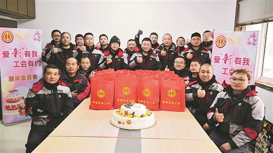 1月26日,江苏省宿迁市宿城区总工会在宿迁顺丰速运举办集体生日会,送上大礼包,共同庆祝生日。本报通讯员 王娜 摄