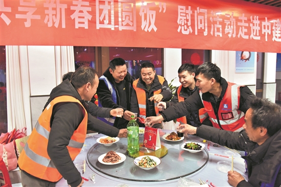 1月22日,江苏省徐州市总工会在中建五局华东建设苏淮分公司举办“共享新春团圆饭”活动。本报通讯员 陈艳 摄