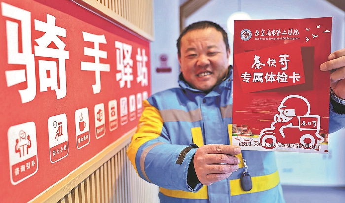 1月20日,河北秦皇岛启动“关爱‘秦快哥’ ”慰问活动,为骑手、货车司机等赠送体检卡。本报特约记者 朱润胜 摄