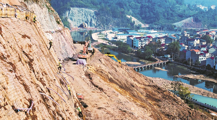 图为班组工人正在进行镜岭水库坝肩开挖。本报记者 蒋菡 通讯员 蒋常虹 摄