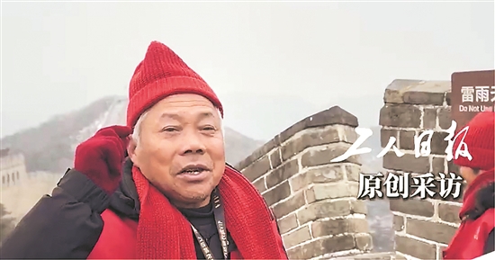 1月30日,在北京八达岭长城景区的邀请下,河南商丘“网红画家”吴承言带领20多位村民登上了长城。站在民族脊梁上,乡亲们异常兴奋和感动。来自吴营村的大爷激动落泪,还现场吟诵起了毛主席诗词《沁园春·雪》。(本报记者 余嘉熙)