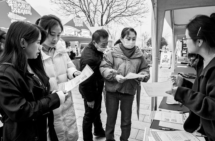 2月1日,安徽省含山县人社局举办的“年货大展销 万名大招工”活动在鑫乐广场举行。活动吸引50多家本地重点企业参与招聘,涵盖机械制造、新能源、新材料、电子信息、食品加工等多个行业,提供生产主管、技术工程师等300多个就业岗位,满足不同群体就业需求,吸引众多求职者前来咨询应聘。本报通讯员 欧宗涛 摄