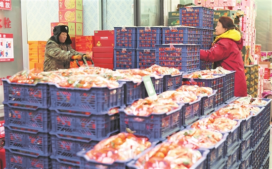 春节将至,位于辽宁省盘锦市的东北新发地农产品供应链中心蔬果吞吐量迎来高峰,南北年货的相遇让春节的年味更加浓郁。