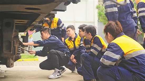 近日,中国铁路太原局集团有限公司太原北车辆段的40名新入职青年职工集结在榆次站修车间,接受入职培训,为铁路春运安全保驾护航。本报通讯员 张驰桢 摄