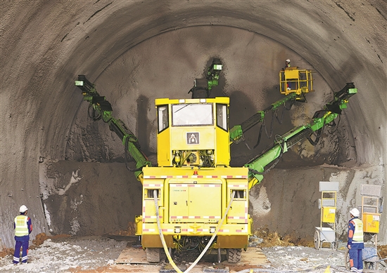 近日,在江西吉安永新县境内的井冈山隧道施工现场,随着智能化三臂凿岩台车对隧道进行机械化作业,长赣高铁全线最长隧道——井冈山隧道正洞进入施工阶段。