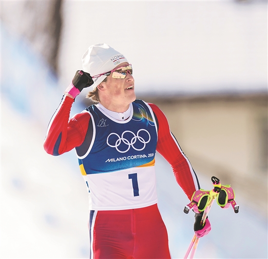 这是2月8日米兰冬奥会越野滑雪男子双追逐(10公里传统技术+10公里自由技术)决赛中的一幕。最后阶段,挪威传奇名将约翰内斯·克莱博在关键爬坡路段展现了自己作为“超级巨星”的实力,全力冲刺,打破了其他所有竞争对手的争冠希望。