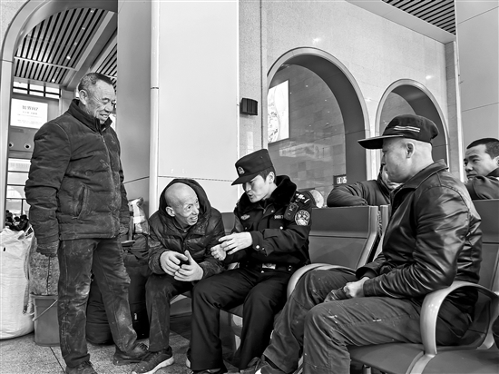 为帮助广大务工人员守牢“钱袋子”,携手共建“无诈返程路”,山西吕梁铁警组织警力深入车站候车室,通过发放资料、案例讲解、互动问答等形式,面向返程务工人员开展反诈宣传、安全宣讲等,重点讲解当下多发的网贷陷阱、刷单返利、冒充公检法等诈骗套路,提醒大家看管好自己的行李,保护好自己的财物。